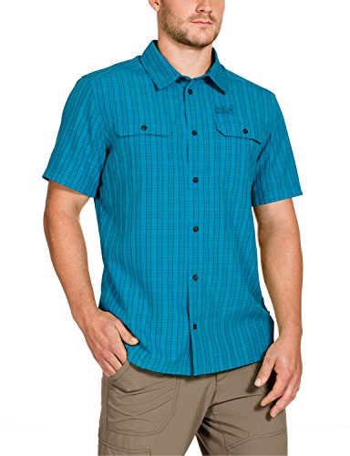 Best Seller! Jack Wolfskin Thompson Shirt Men's Shirt turquoise Turquoise Checks Size:Small Review